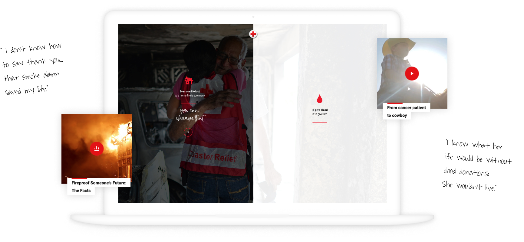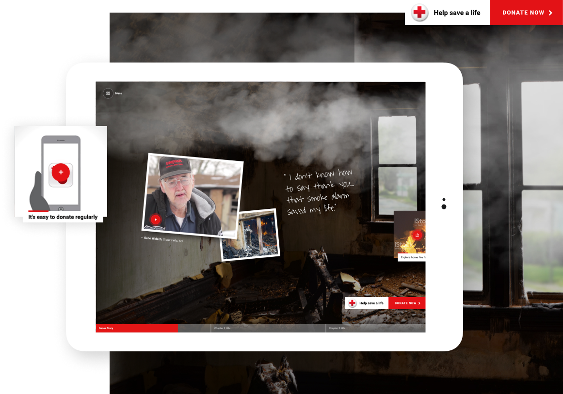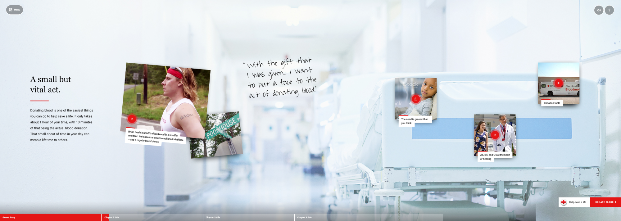 The Red Cross wanted to share the website on tablets at different touchpoints, such as public events and blood drives, so we made sure that the horizontal-scrolling experience was seamless across platforms. Sticky “donate money” and “donate blood” calls-to-action help to drive engagement, so that people don’t forget that they can be a literal lifeline.